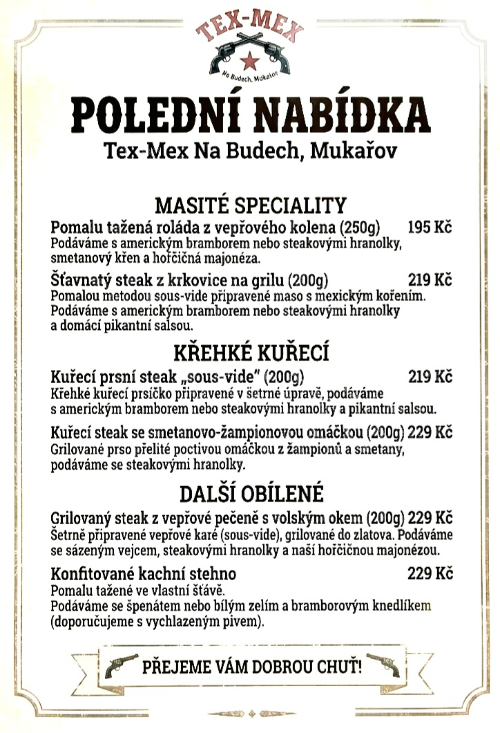POLEDNÍ NABÍDKA 11hod až 15hod pondělí – pátek v pracovní dny . Polední menu nabízíme pondělí – pátek pracovní dny od 11hod-15hod .